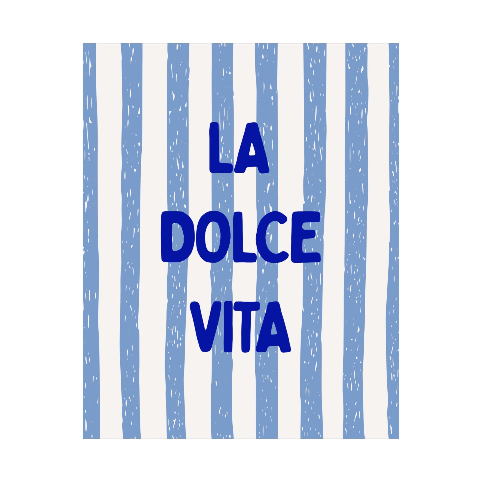 Designed to transport you straight to Italy’s coastline, this print celebrates the simple joys of the sweet life. With its calming blue palette and coastal stripe design, it brings the feeling of salty air, slow afternoons, and sun-drenched adventure into your home. Ideal for kitchens, bedrooms, and travel-inspired gallery walls.