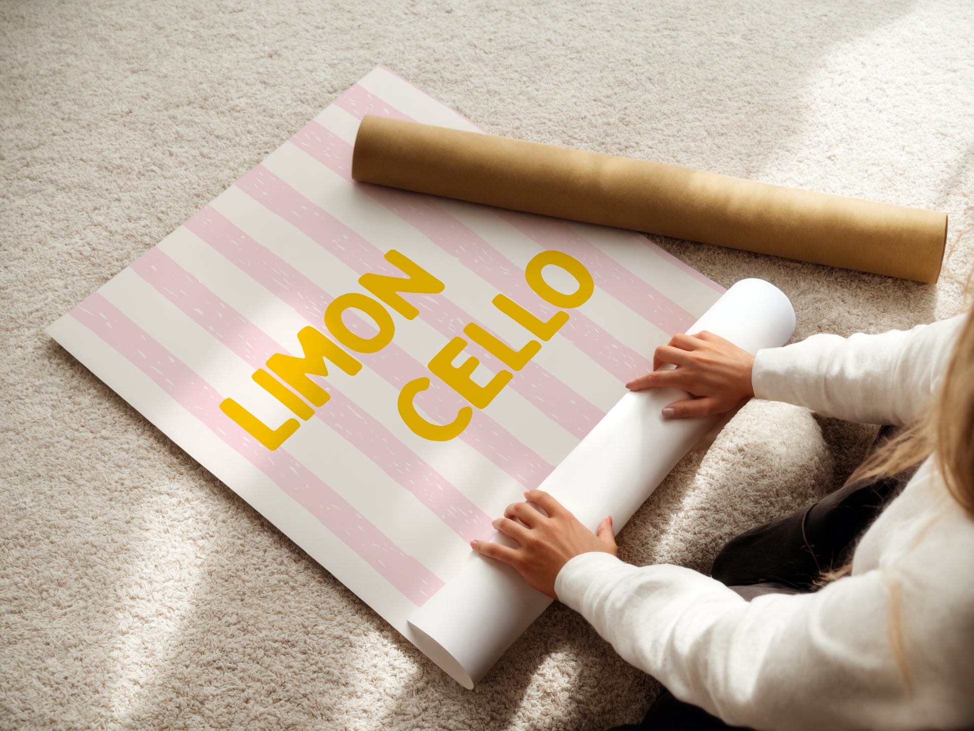Bring a burst of Italian sunshine into your home with this playful limoncello wall print. Featuring bold yellow lettering against soft pink stripes, this design adds a fun, modern twist to any kitchen, bar cart, dining area, or gallery wall. Perfect for lovers of Italian vibes, Limoncello moments, and cheerful décor, this print pairs beautifully with colorful interiors and summer-inspired spaces. A great gift for foodies, cocktail fans, or anyone who dreams of long Mediterranean holidays.