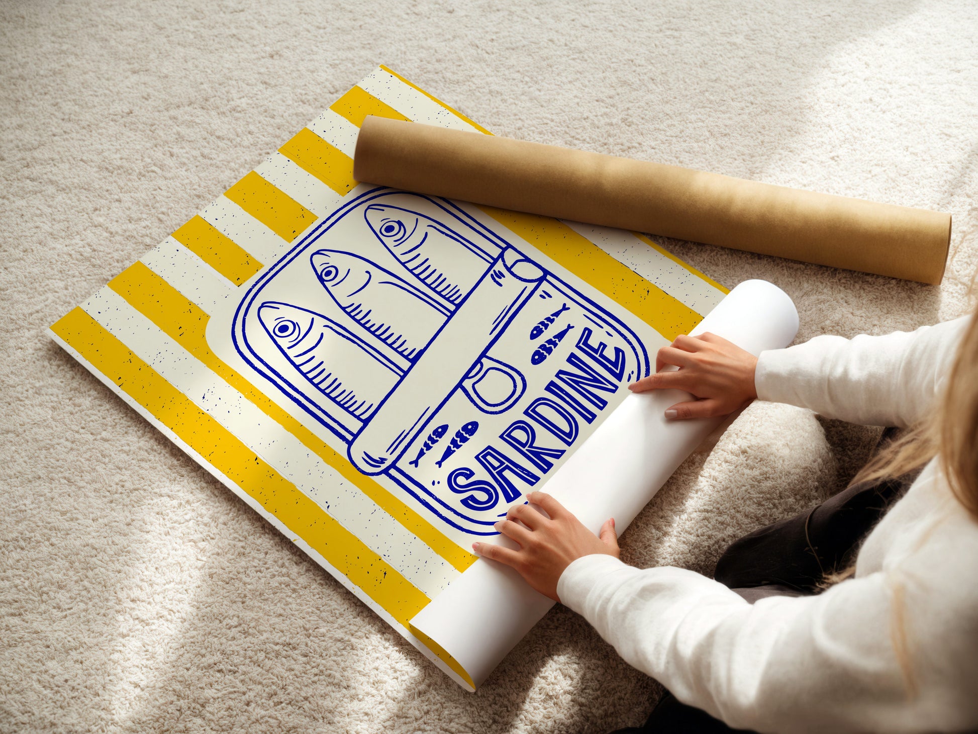 Bring the charm of an Italian seaside kitchen into your home with this Sardine Tin art print Inspired by markets and sunny coastal towns, this artwork adds a playful foodie touch to any kitchen or dining space. Perfect for Italian decor lovers, coastal homes, and anyone who dreams of sunlit summers by the sea. Mix and match with other Mediterranean prints for the perfect gallery wall.